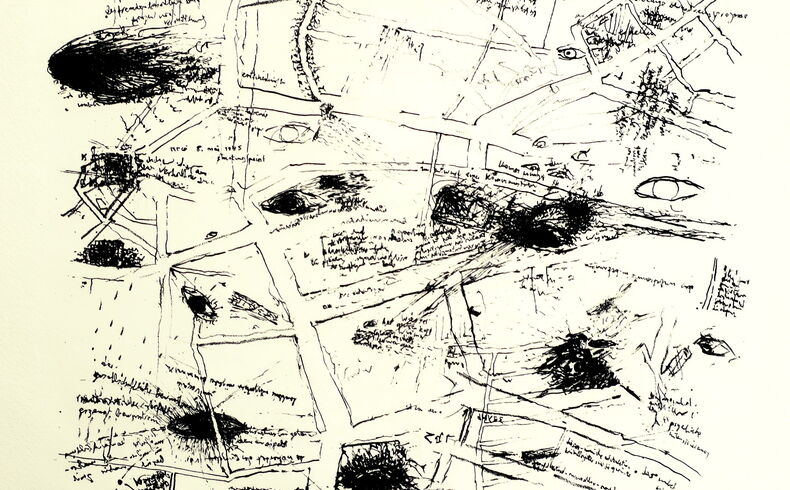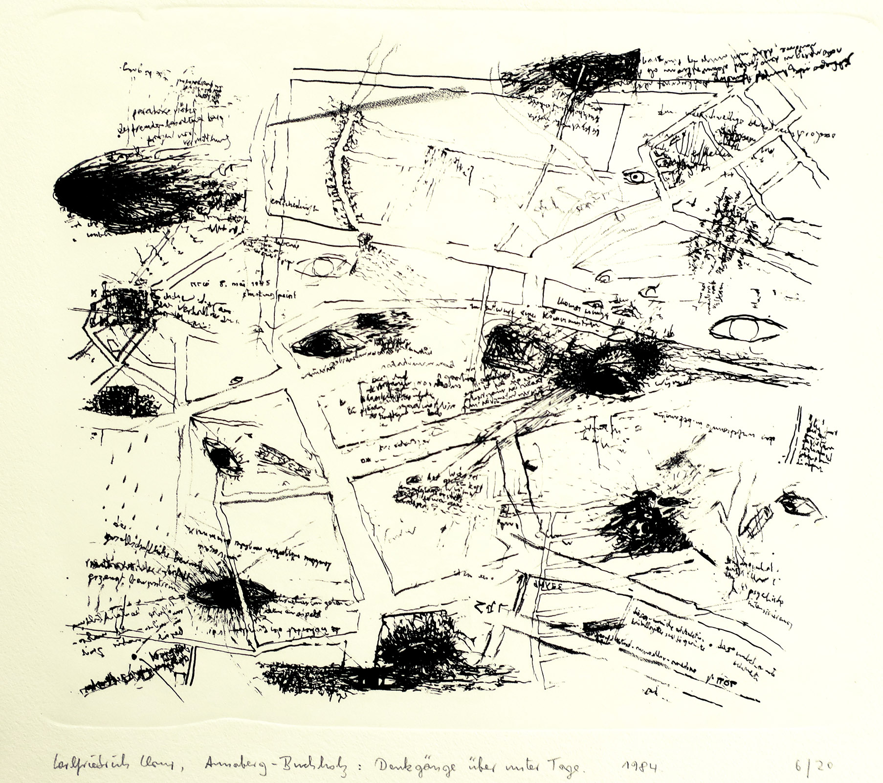 Seit 1950 experimentelle Texte, „Letternfelder“, seit Anfang der 60er sogenannte „Sprachblätter“ – beidseitig beschriftetes und bezeichnetes Transparentpapier