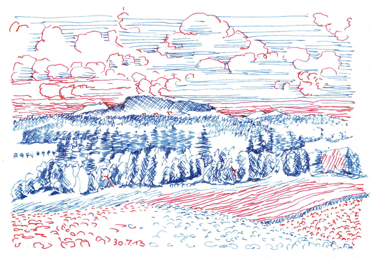 Bearbeitung neuer bildnerischer Probleme in Aquarelltechnik (überlagerte Graphen als Sfumati, überlagerte Flächen als Lasuren)
