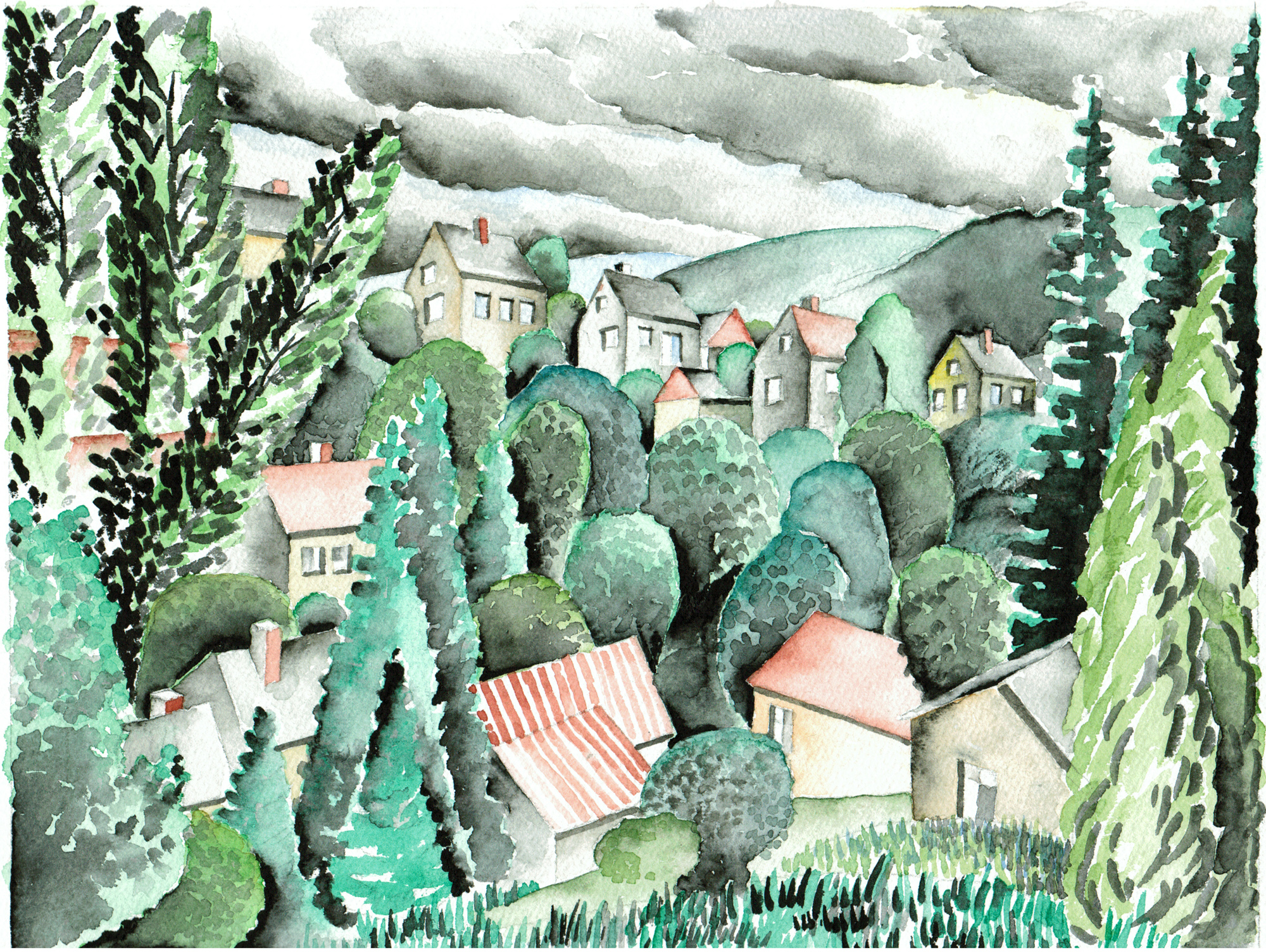 Bearbeitung neuer bildnerischer Probleme in Aquarelltechnik (überlagerte Graphen als Sfumati, überlagerte Flächen als Lasuren)