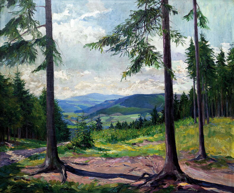 Namen wie Artur Ahnert, Alfred Hofmann-Stollberg und Georg Höhlig stehen für eine Künstlergeneration, die noch weitgehend vor dem Zweiten Weltkrieg gearbeitet haben. Ihre Werke sind deutlich an der Natur orientiert, weisen in unterschiedlichem Maße aber auch markante Spuren des Impressionismus auf. Hier wäre auch der etwas jüngere Auer Künstler Ernst Hecker einzuordnen. Dank einer äußerst großzügigen Schenkung durch die in Frankreich lebende Tochter kann sich die Sammlung über ein Landschaftsgemälde und ein Porträt des bekannten und spätimpressionistischen Malers freuen, welche mit Sicherheit zu den herausragendsten Neuzugängen des Jahres gehören.