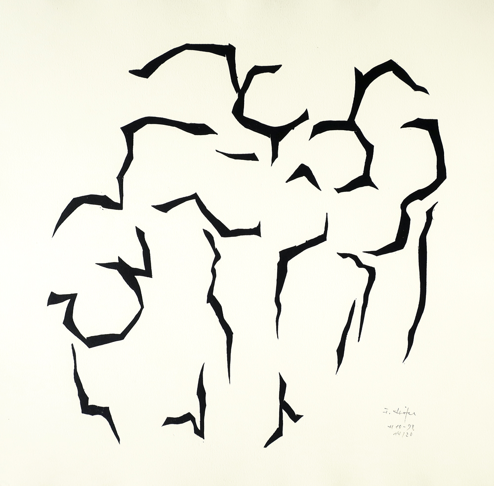 Fels- und Gesteinsformationen stehen auch im Mittelpunkt des künstlerischen Interesses von Friedrich Höfer. Der aus dem Vogtland stammende Künstler lebt seit Jahrzehnten im Odenwald. In seinen auf wenige gestalterische Elemente reduzierten Holzschnitten nähert er sich auf ganz eigene Art und Weise den bekannten Basaltformationen auf dem Hirtstein oder am Scheibenberg.
